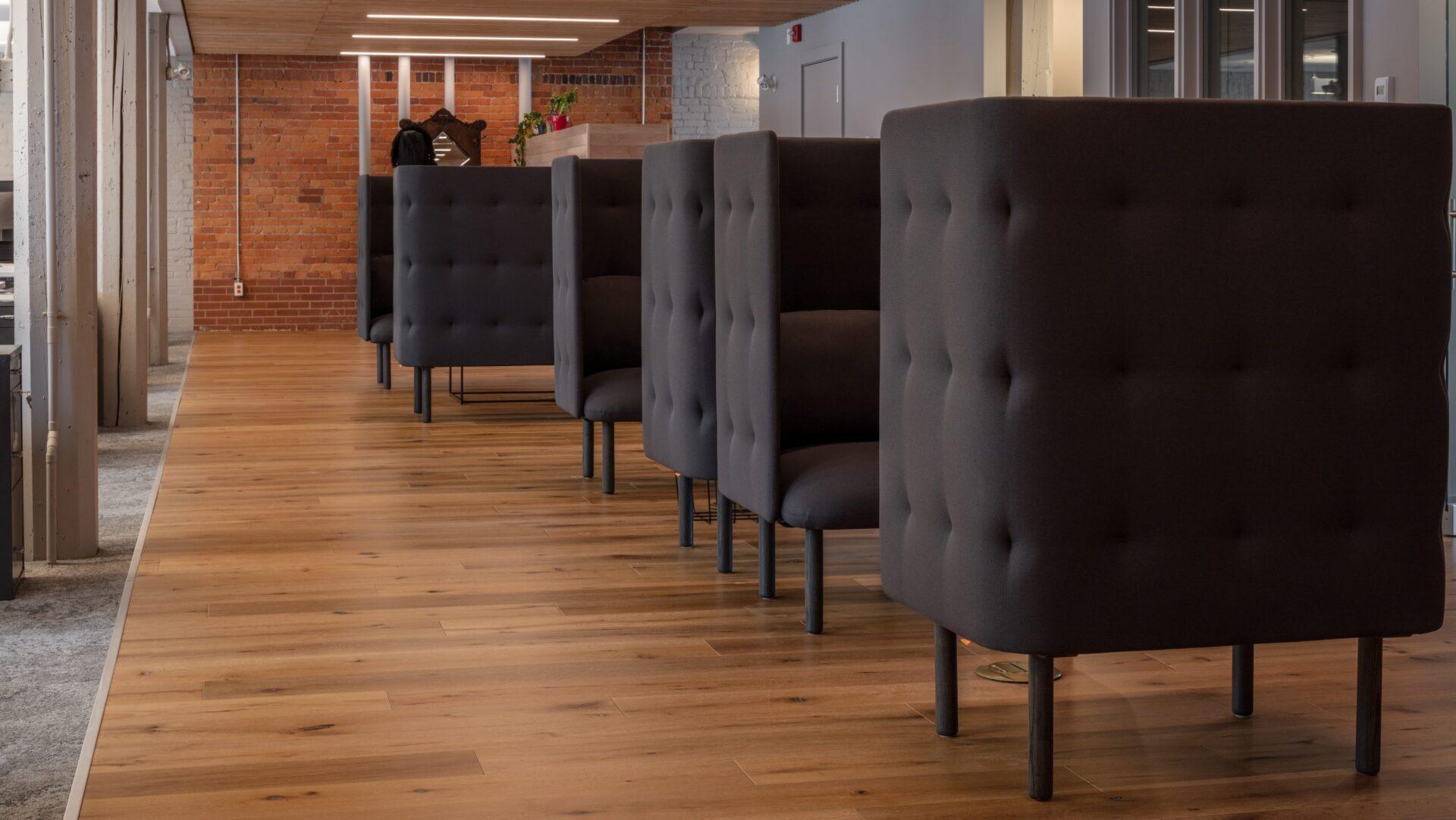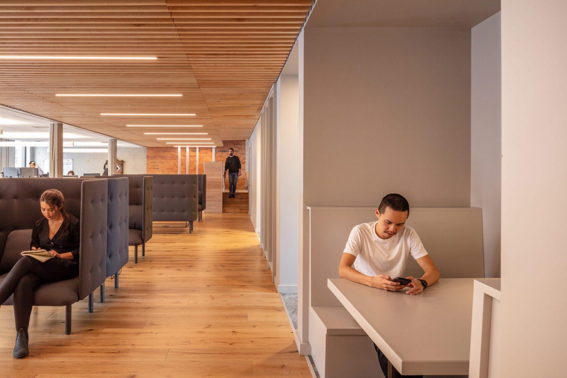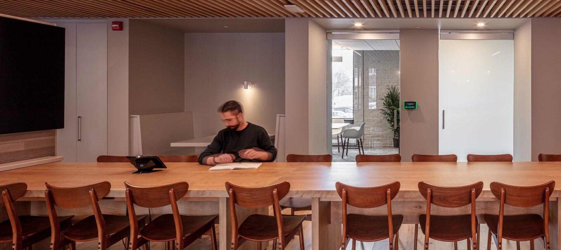 With the help of Acre, this modern engineering firm choose one of Fredericton’s most ironically historic structures for their new headquarters. Our mission was to help celebrate the textured original interior while making clear distinctions between new and old. We created a new wood ceiling to delineate collaborative zones and help define circulation routes within.