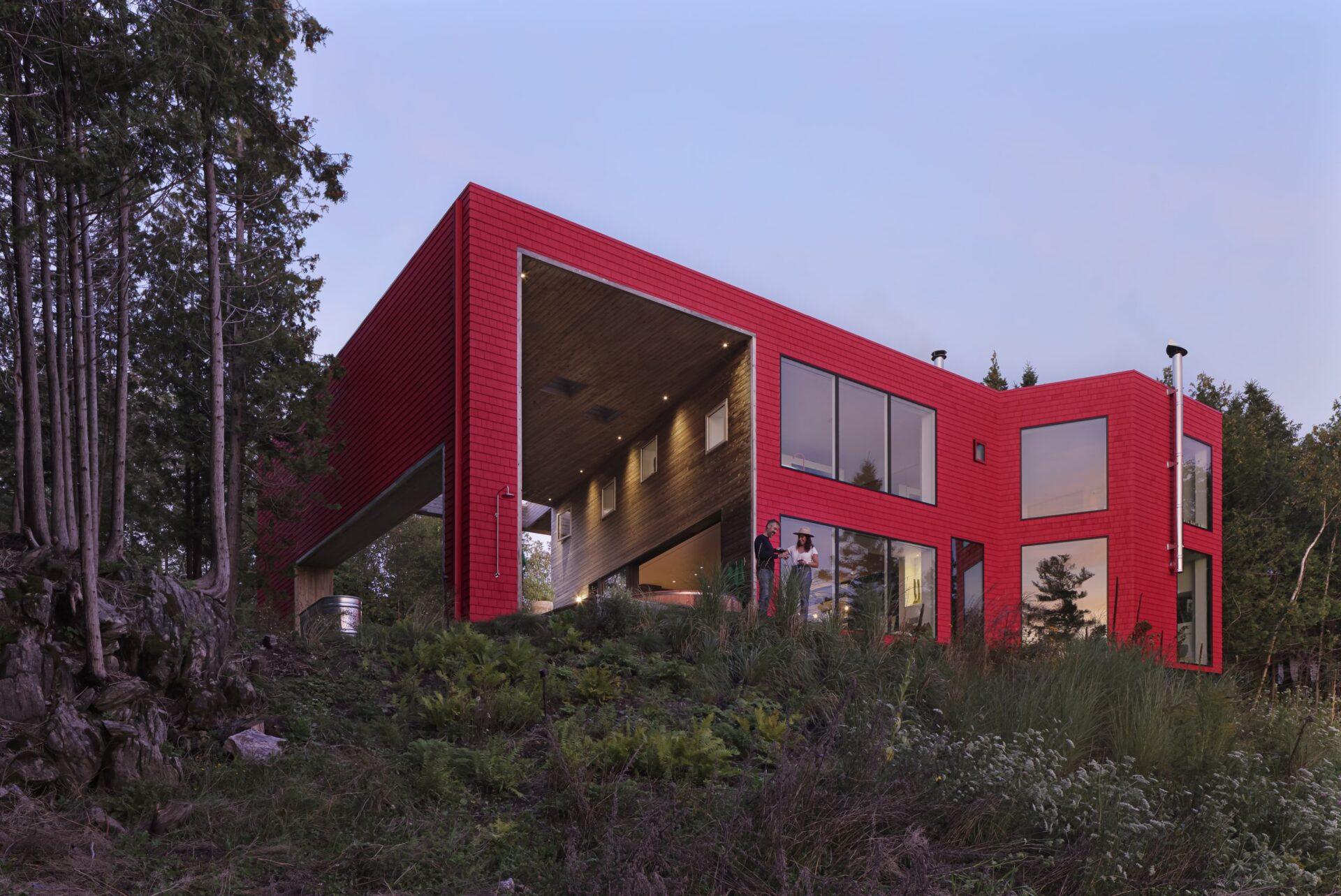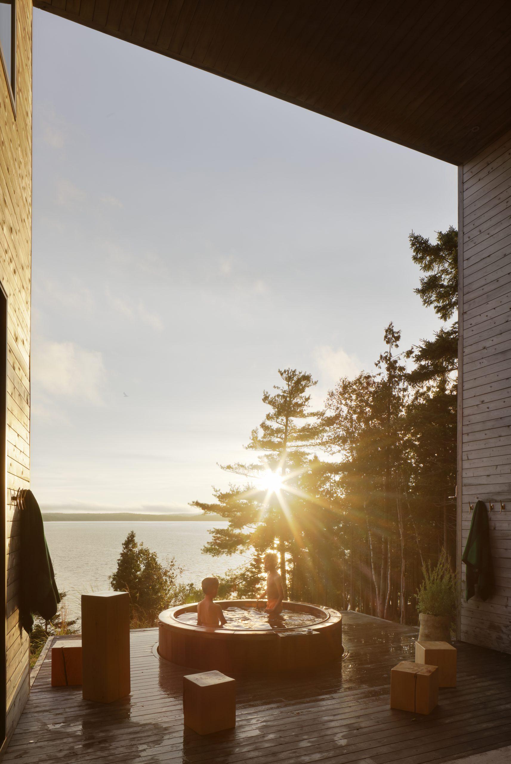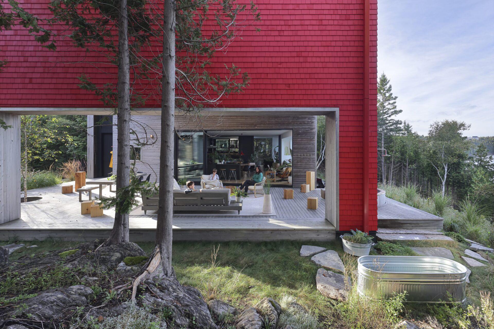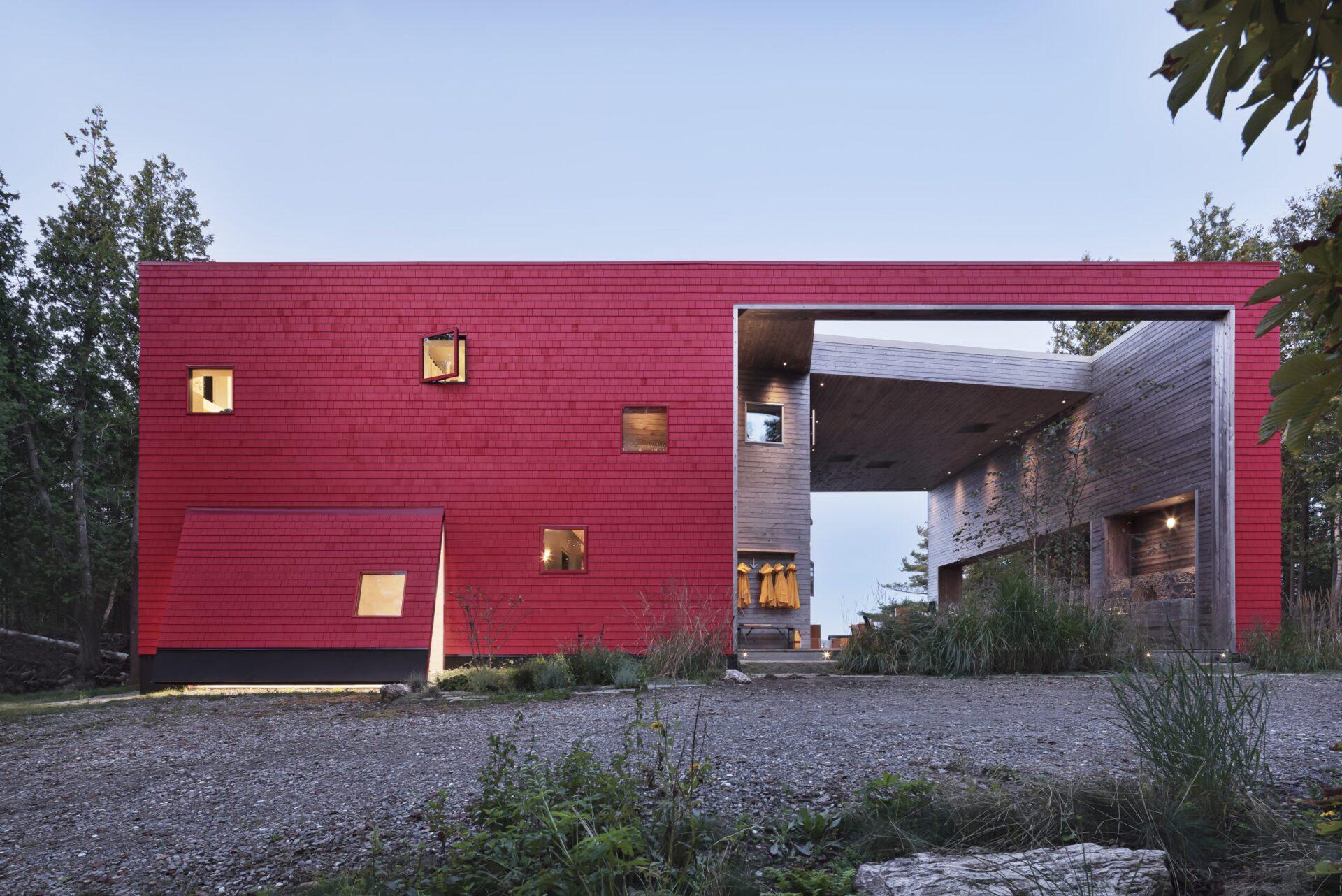 Situated at the confluence of two rivers, Run Ragged is named for the rock point it sits on, forming part of the Stonehammer UNESCO Global Geopark. Inspired by its site, Run Ragged is designed as an instrument for viewing nature – framing four natural landscapes.